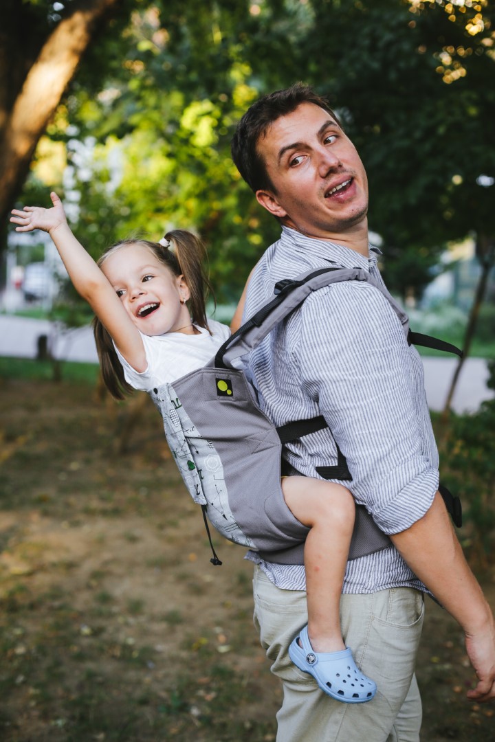 - Are panou din material de wrap, ca Luna Evo, adică se mulează bine pe spatele copilului