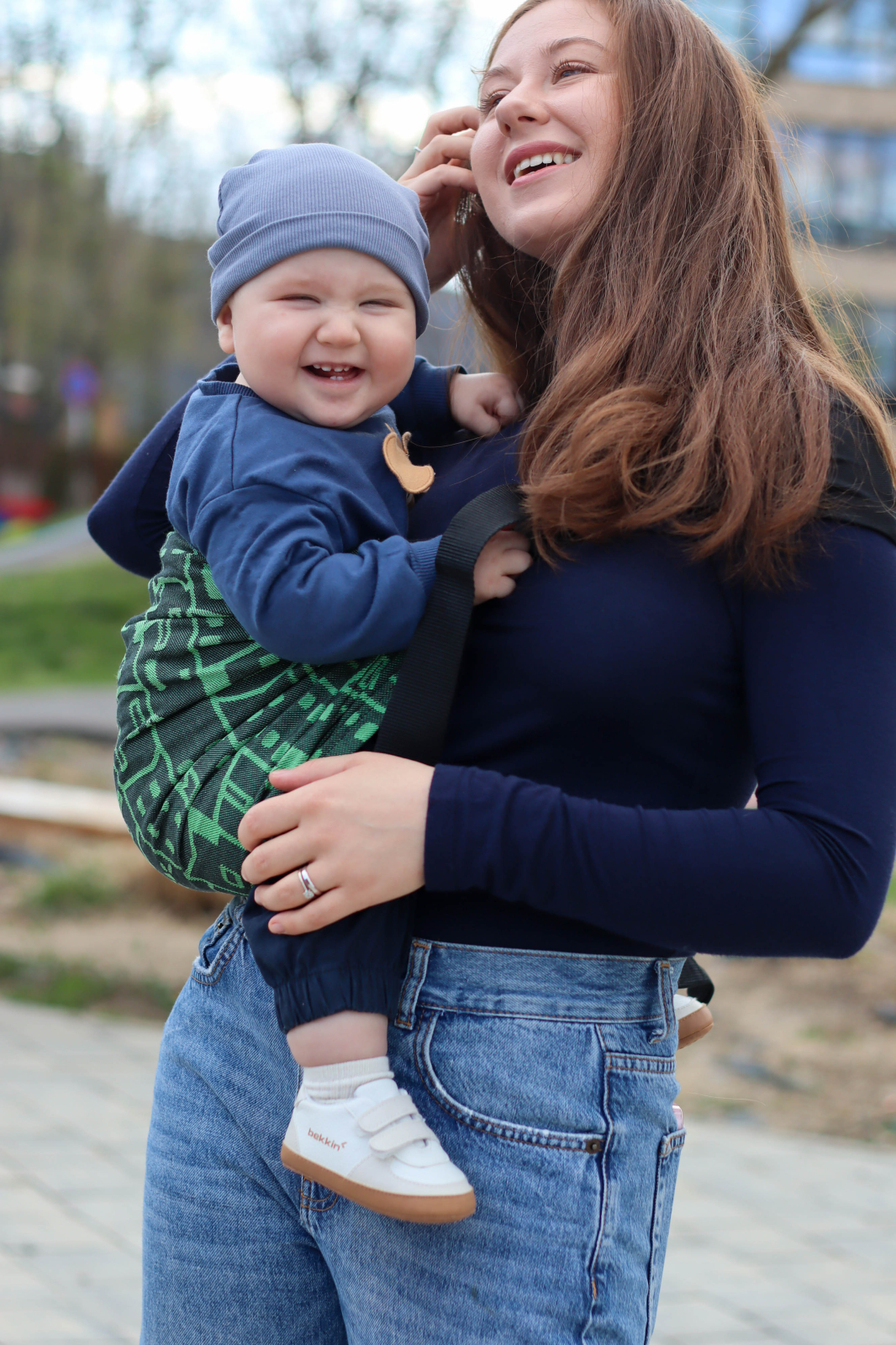 ROA este un sling hibrid pentru etapa în care copilul merge, explorează și vrea să fie când jos, când în brațe.